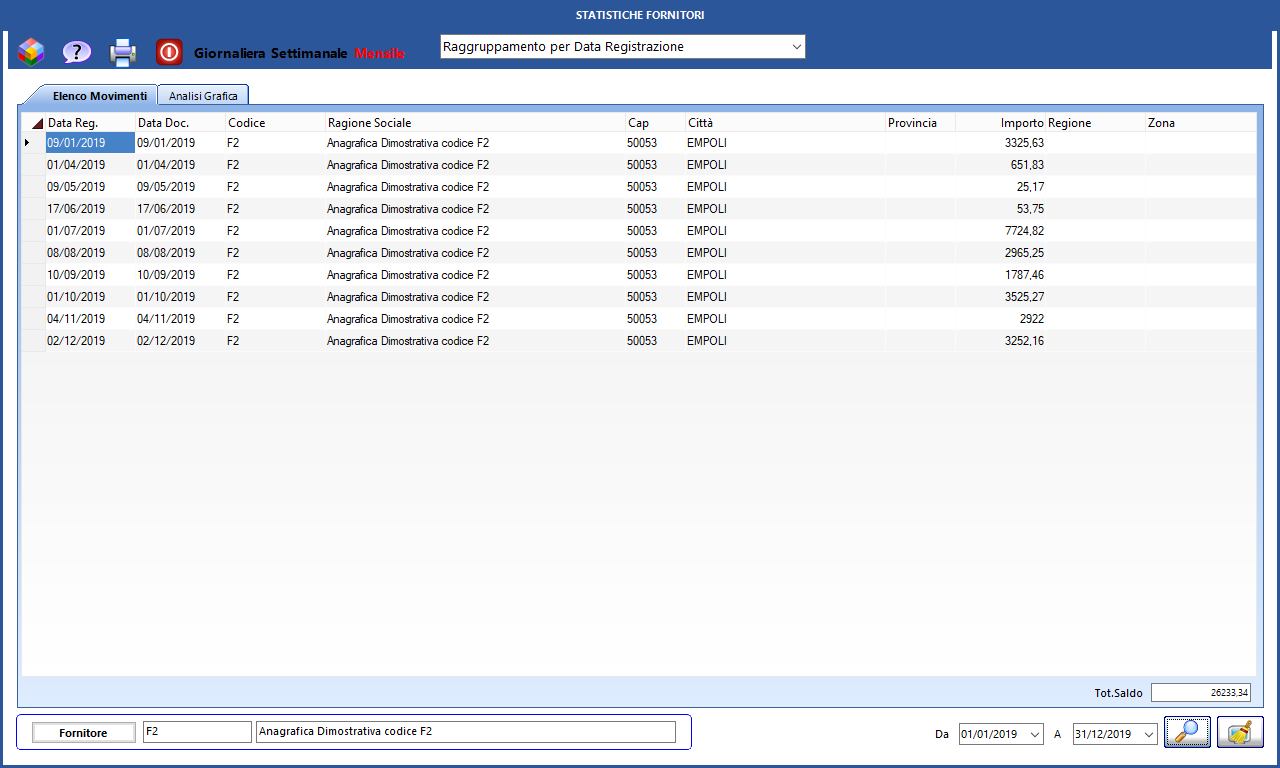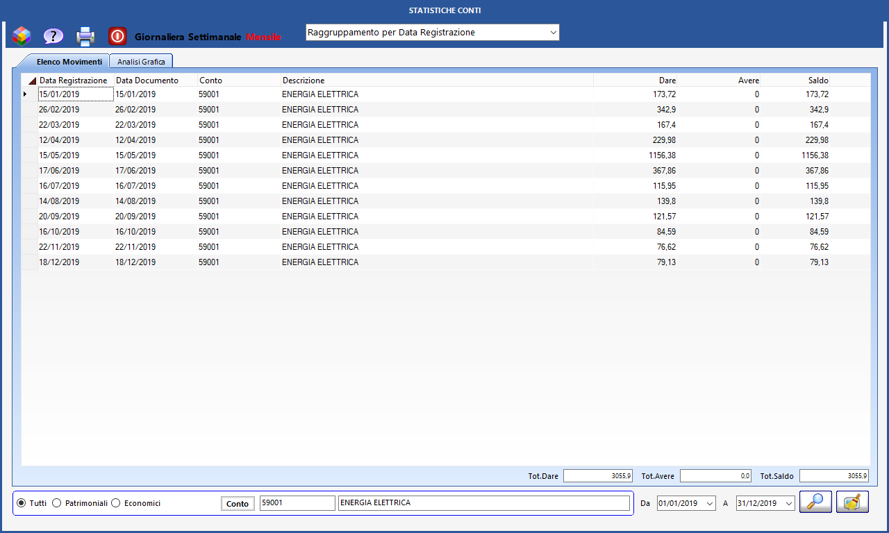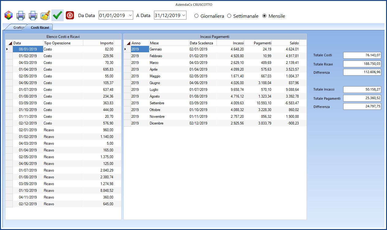 Alcune statistiche grafiche e tabellari disponibili con AziendaCs 5.0
